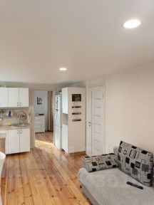 На втором этаже кухня - гостинная, спальня и санузел. Сделан свежий ремонт, новая электрика по дому, новые трубы. Установлены новые стены, обшиты гипсокартоном и поклеены. Полностью заменен пол, сделан из дерева и покрыт лаком. Также заменена лестница 2 этажа. В доме натяжные потолки, поклеены свежие обои. Остается кухонная мебель, душевая кабина, унитаз, раковина.