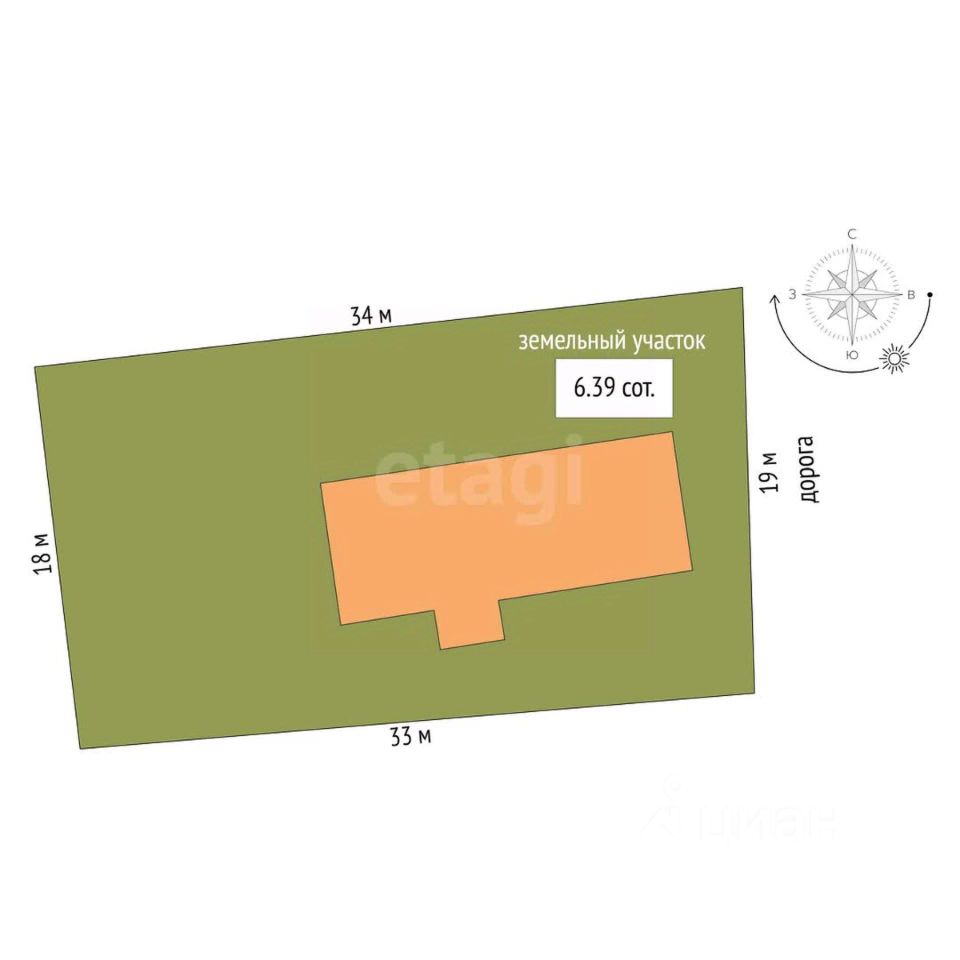 Дом площадью 48,5 кв.м построен из бревна, находится на участке 6,39 соток.