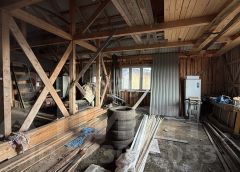 Дом каркасный, двухэтажный, с верандой, размером 9x13 м. Коммуникации: электричество, центральный водопровод, септик. Отопление комбинированное жидкостное: дровяной котёл 45 кВт, электрокотёл 9 кВт. Котельная в отдельном помещении, которое также можно использовать для хранения запасов. Дом идеально подготовлен для всесезонного проживания. На первом этаже: две спальни, совмещённая гостиная с кухней, совмещённый санузел, кладовая. Второй этаж — свободное пространство для планировки по вашему желанию. В доме остаётся встроенная мебель и техника.