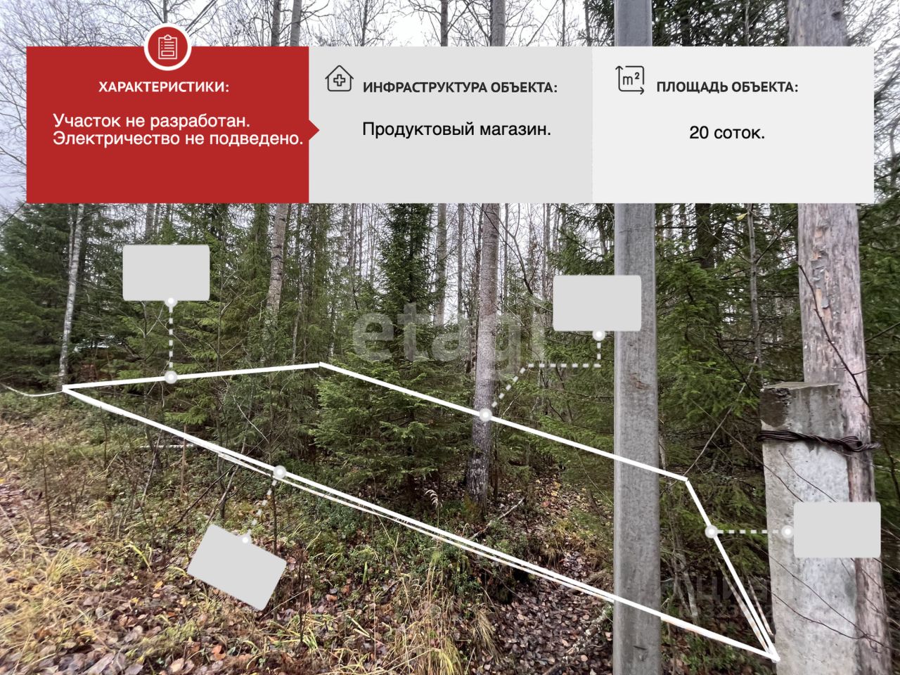 Для строительства дома необходимо подготовить участок, разработать и отсыпать его. На участке уже установлен столб, есть подключение к электричеству, вода скважина или колодец. В СНТ есть общественный транспорт и магазины.