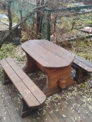 На улице столик со скамеечками - уютное место для шашлыков, есть мангал.