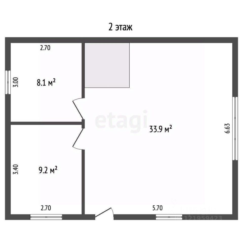 На втором этаже: большая комната 25 кв.м., детская комната 9,2 кв.м. и санузел 8 кв.м.