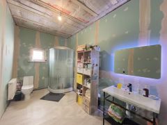 Внутреннее пространство дома продумано до мелочей: большая кухня-гостиная, три спальни, которые можно легко адаптировать под ваши нужды, а также вместительная гардеробная. Все комнаты оформлены в современном стиле с качественными натяжными потолками и ламинатом. В ванной комнате с совмещенным санузлом осталось лишь завершить отделку стен и потолка, а также предусмотрено место под второй санузел. Отдельная бытовая комната с стиральной машиной и сушилкой, электрокотлом и водонагревателем обеспечит вам комфорт и удобство.