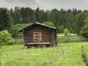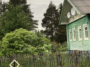 Дом на участке в конце деревни, можно сказать хутор, стоит задней частью к дороге, нет пыли, фасад повернут в сторону речки, поляны под горой и лесу. Территория чистая без хлама и мусора, огород распахивается, дорабатывать можно мотоблоком, земля плодородная , легкая. Огромное количество кустов- малина, смородина белая, черная, красная, крыжовник зеленый и бурый, боярышник несколько кустов, ранет, черноплодка 2 больших куста, жимолость, ежевика, слива, много кустов вишни, ирга много, много кустов больших и маленьких сирени белой и розовой (Аромат легкий приятный), голубая ель, просто ели на периметре участка, черемуха и рябина красная на участке и кругом. На участке можно собирать бруснику, землянику, растут маслята и рыжики, в лесу много. На участке растет огромная лиственница, липа, у колодца два хороших крепких кедра. Кругом лес , участок с двух сторон ограничен лощиной с ручьем(метров 10) высота , с третьей дорога на Шенкурск(чистят, широкая и ровная), до ближайщего соседа метров триста. Дом крепкий, чердак, поветь, двор для содержания животных и птиц, туалет, дровеник, сени, кладовка с погребом, отдельная комната с русской печью и плитой с подвалом чистыт окрашенным спец средствами, отдельно две комнаты и кухня с русской печью и плитой и подвалом чистым и окрашенным все стоит на камнях, на столбиках, можно смотреть со всех сторон . На доме 10 окон и окна на подвале. На улице амбар из бревон включая потолок, , баня крепкая с двойными полами, гараж, сараи, летняя кухня, эстакада . Внизу у колодца в домике ручей с прудиком для карасевых(почистить, если использовать ), аналогично и с другой стороны. Выход на дорогу с воротами для авто и ворота для себя. Огорожено все жердями, почти каждый пролет укреплен трубами, стоять будет долго. Над жердями проволока стальная. За домом через дорогу и перед домом внизу много земли и для пастбища и посадок дополнительно.