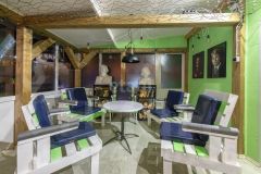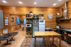 Это большой двухэтажный дом площадью 267 кв.м. с мансардой. В нем три больших спальни, полностью меблированные, с каминами, с душем и туалетом, игровая комната отдыха, большая кухня со всем необходимым оборудованием и посудой, обеденный банкетный зал, большой холл.