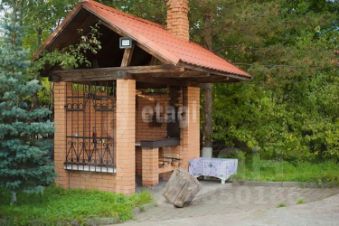 На территории, огороженной кованным забором, есть несколько технических построек, барбекю, стоянка для авто и пр.