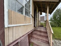 На первом этаже расположены кухня, жилая комната с печью и просторная веранда, на втором этаже комната и места для хранения.