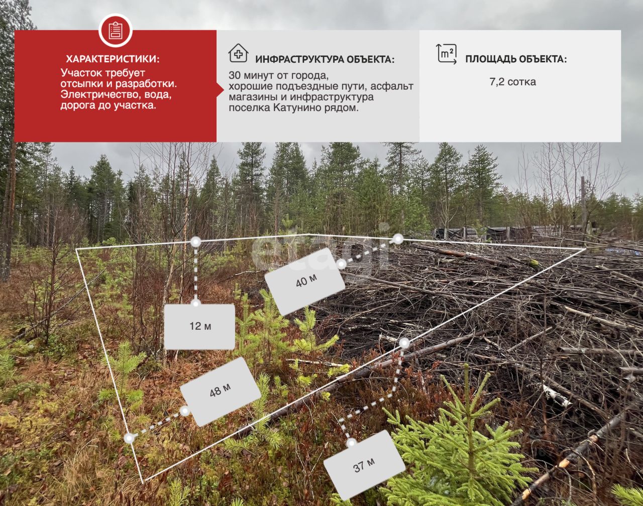 В СНТ Катунинец выставлен на продажу земельный участок площадью 7,1 сотки, который находится в стадии разработки и требует отсыпки. К участку проведена грунтовая дорога, на границе участка установлен столб. Водоснабжение в СНТ осуществляется из колодца или скважины.