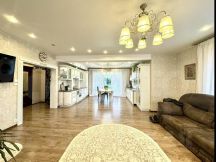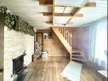 Кухня совмещена с залом. Два сан узла, гардероб. Большой гараж, котельное помещение.