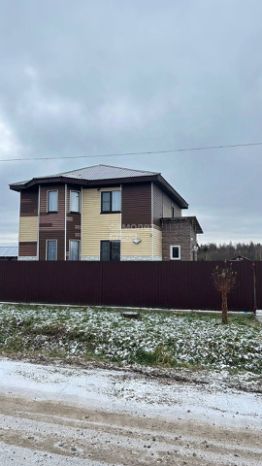 На участке: высокий забор по всему периметру, игровая детская площадка.