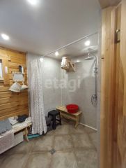 На участке: баня с террасой, комнатой отдыха, помывочной и парной. Гостевой домик с небольшой кухней. Сарай.