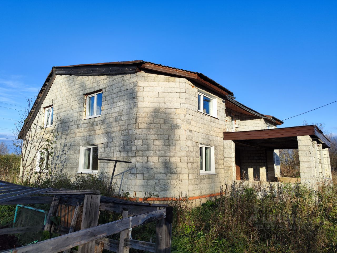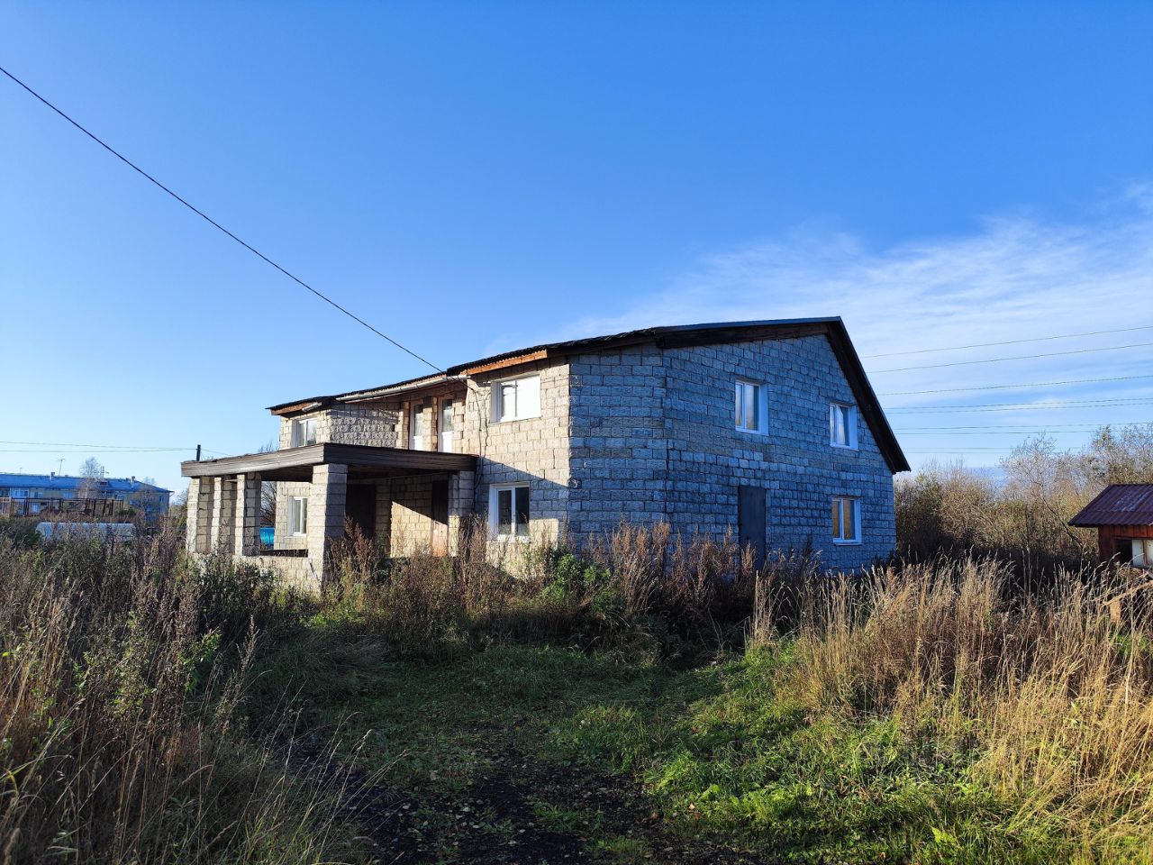 Жилой дом 241,9 кв.м., 2-х этажный, блочный, без отделки, 2013 год постройки, кадастровый номер: 29:16:201101:60, расположен по адресу: Российская Федерация, Архангельская область, муниципальный округ Приморский, поселок Луговой, дом 1А.