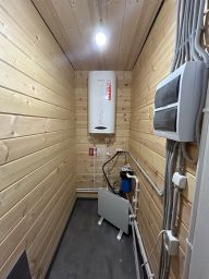 Дом построен в 2025 году из качественных материалов, имеет евроремонт и полностью готов к заселению. Внутри три комнаты, один совмещённый санузел и балкон. Электрическое отопление обеспечивает комфорт в любое время года. Есть все необходимые коммуникации — электричество и водоснабжение.