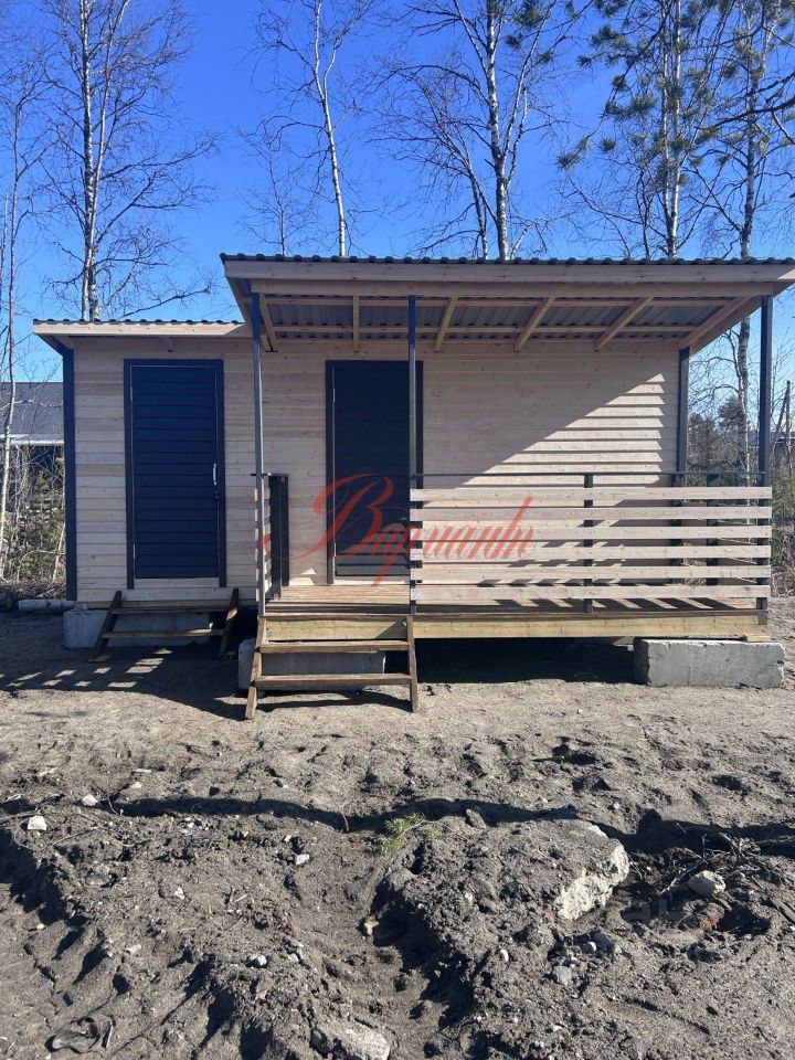3/4 участка вырублено и 1/2 отсыпана, так уже установлена каркасная времянка с террасой.