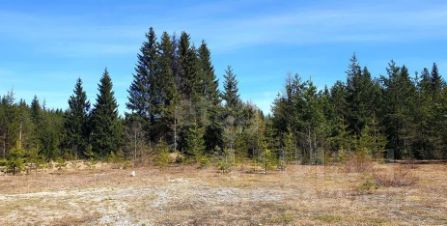 Площадь 16 соток, отсыпан и спланирован. Крупные деревья убраны, оставлены небольшие елочки для красоты и уюта.