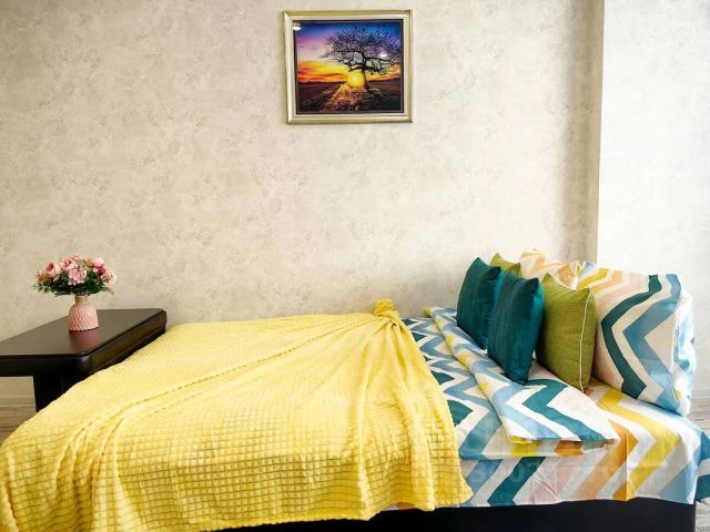 Просторный однокомнатный номер с двуспальной кроватью, отдельной мини-кухней в деревянном гостевом доме. Важно: цветовая гамма номера может отличаться от заявленного на фото! Завтрак: включен (с 08:00 до 11:00). Жилая площадь: 55 м2. Расположение: Гостевой дом 1, 2. Вместимость: 2 основных места (+2 доп.места за отдельную плату на раскладном диване). Спальные места: двуспальная кровать, диван (доп.место). Мини кухня: чайник, холодильник, микроволновая печь, бутылка с помпой. Набор посуды: салатники, тарелки, чашки, стаканы, чайные ложки, столовые ложки, вилки, нож, графин, чайные пакетики, пакетики сахара - на 4 персоны. Набор предметов гостеприимства: зубной набор, шапочка для душа, тапочки, беруши. Ванная комната: душ, пол с подогревом, туалет, фен