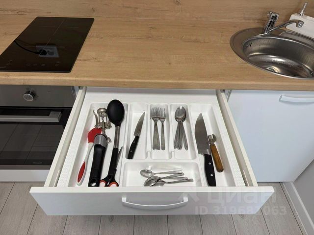 - Техника: стиральная машина, холодильник, варочная панель, вытяжка, духовка, микроволновка, чайник, утюг + гладильная доска и сушилка.