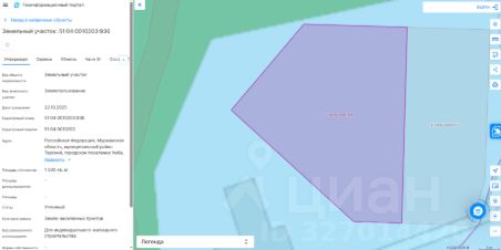 Данные получены с сайта ГИС Торги. Земельный участок с кадастровым номером 51:04:0010203:936 площадь 1500 по адресу Российская Федерация, Мурманская область, муниципальный район Терский, городское поселение Умба, поселок городского типа Умба