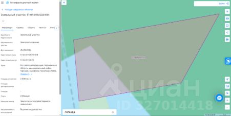 Данные получены с сайта ГИС Торги. Земельный участок с кадастровым номером 51:04:0020001:425 площадь 1008 по адресу Российская Федерация, Мурманская область, муниципальный район Терский, городское поселение Умба, село Оленица
