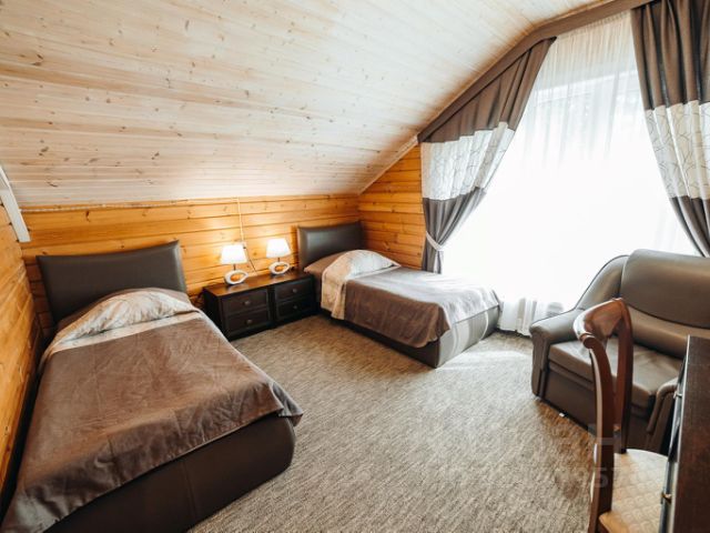 Гостиничный комплекс "Вотчина" расположен прямо во владениях Деда Мороза в его Северном Царстве! Чистый воздух, спокойствие и уют способствуют хорошему отдыху круглый год! На территории гостиничного комплекса расположено 11 теремов, разных по комфортабельности, категории, классности и количеству проживающих. Это комфортабельные терема из натурального дерева, оборудованные кухнями, удобными номерами с бесплатным Wi-Fi — интернетом. Все номера полностью укомплектованы всем необходимым для комфортного проживания. Для детей на территории Вотчины Деда Мороза продуманы разнообразные круглогодичные аттракционы: городки, батуты, заезды на роликах и квадроциклах по лесным тропинкам, лыжи, катание на снегоходах, на печи, на пневмосанях с русских горок. Комплекс кафе и ресторанов "Снежинка" - это 6 абсолютно не похожих друг на друга залов с уникальным оформлением и атмосферой. Гостеприимная "Веранда", банкетный зал "Библиотека" для уютных встреч, брутальный зал для приемов групп гостей - "Охотничий", основной и самый большой банкетный зал - "Снежинка", гриль-кафе "Ребро" - для тех, кто ценит качественный фастфуд и кафе щедрой русской кухни "Щи да каша". Аэропорт находится в 10 км от парк-отеля, а железнодорожный вокзал - в 12 км. В зимнее время в окрестностях распространены катание на санях и с горки. Уютный двухместный номер первой категории (стандарт). Номер находится на 2 этаже двухэтажного коттеджа. Также в коттедже есть общая гостиная-кухня и бильярд.