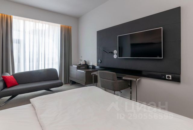 В номере: телевизор, два телевизора, кабельное телевидение, DVD-плеер, Wi-Fi, телефон, холодильник, светильник, настольные лампы, фен, вентилятор, система безопасности, электронные замки, ванная комната, ванна, санузел, дополнительный санузел, биде, теплый пол, банные принадлежности, халаты, банные полотенца, тапочки, гигиенические средства, косметические средства, кровать "King size", гипоаллергенное белье, гладильная доска, ортопедический матрас, диван, кресла, тумбы, стулья, шкаф для одежды, гардеробная, вешалки, журнальный столик, письменный стол, багажная тумба, зеркало, комод, ковер, эксклюзивная мебель, мебельный гарнитур, мини-бар, письменные принадлежности, чайный набор, набор посуды, обслуживание номеров, информационная карта, меню, сейф, минеральная вода, чайник, интернет. Имеется кондиционер