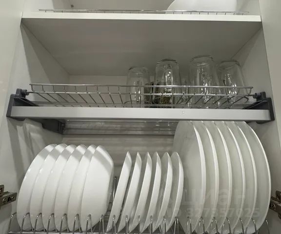 - Техника: стиральная машина, холодильник, варочная панель, вытяжка, духовка, микроволновка, чайник, утюг + гладильная доска и сушилка.