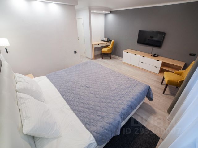 Самый большой номер, который идеально подходит для большой семьи или компании. Важно: цветовая гамма номера может отличаться от заявленного на фото. Завтрак: включен (с 08:00 до 11:00). Жилая площадь: 106 м2. Количество спален: 2. Расположение: гостевой дом 2.Вместимость: 4 основных места (+ 6 доп.мест за отдельную плату на раскладных диванах). Стоимость доп.места: 1300 рублей / сутки. Спальные места: 2 двуспальные кровати, 4 дивана (доп.места). Мини кухня: чайник, микроволновая печь, холодильник, бутылка с помпой. Набор посуды: салатники, тарелки, чашки, стаканы, чайные ложки, столовые ложки, вилки, нож, графин, чайные пакетики, пакетики сахара - на 4 персоны. Набор предметов гостеприимства: зубной набор, шапочка для душа, тапочки, беруши. Ванная комната: душ, пол с подогревом, туалет, фен.
