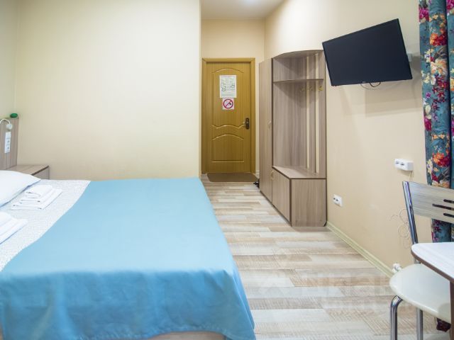 Уютный небольшой номер с одной кроватью. В номере: спутниковое телевидение, телевизор, светильник, электронные замки, кондиционер, настольные лампы,фенсистема климат-контроля, Wi-Fi, телефон, односпальная кровать, багажная тумба, зеркало, кресло, вешалки, журнальный столик, чайный набор,чайник, сейфкомод для вещей.